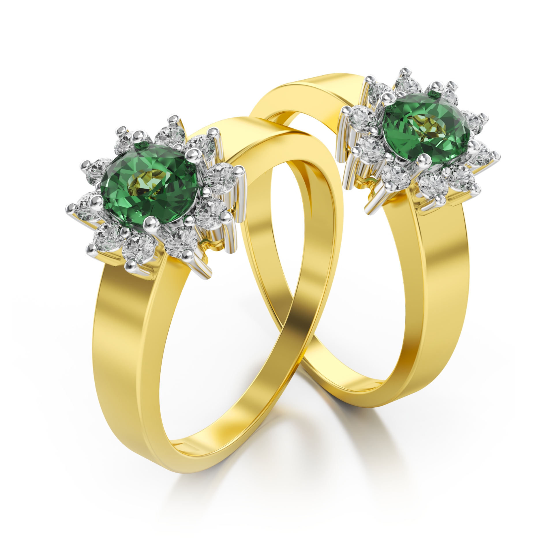 Der Verlobungsring ST06 aus Gelbgold vereint klassische Eleganz mit der intensiven Ausstrahlung eines edlen Farbsteins. Im Mittelpunkt steht ein ovaler grüner Smaragd in der Größe 5×4 mm, dessen lebendige Farbe im warmen Ton des Gelbgoldes besonders wirkungsvoll zur Geltung kommt. Der Smaragd verleiht dem Ring Tiefe, Charakter und eine ausdrucksstarke Symbolik. Er wird von funkelnden, echten Diamanten umrahmt.