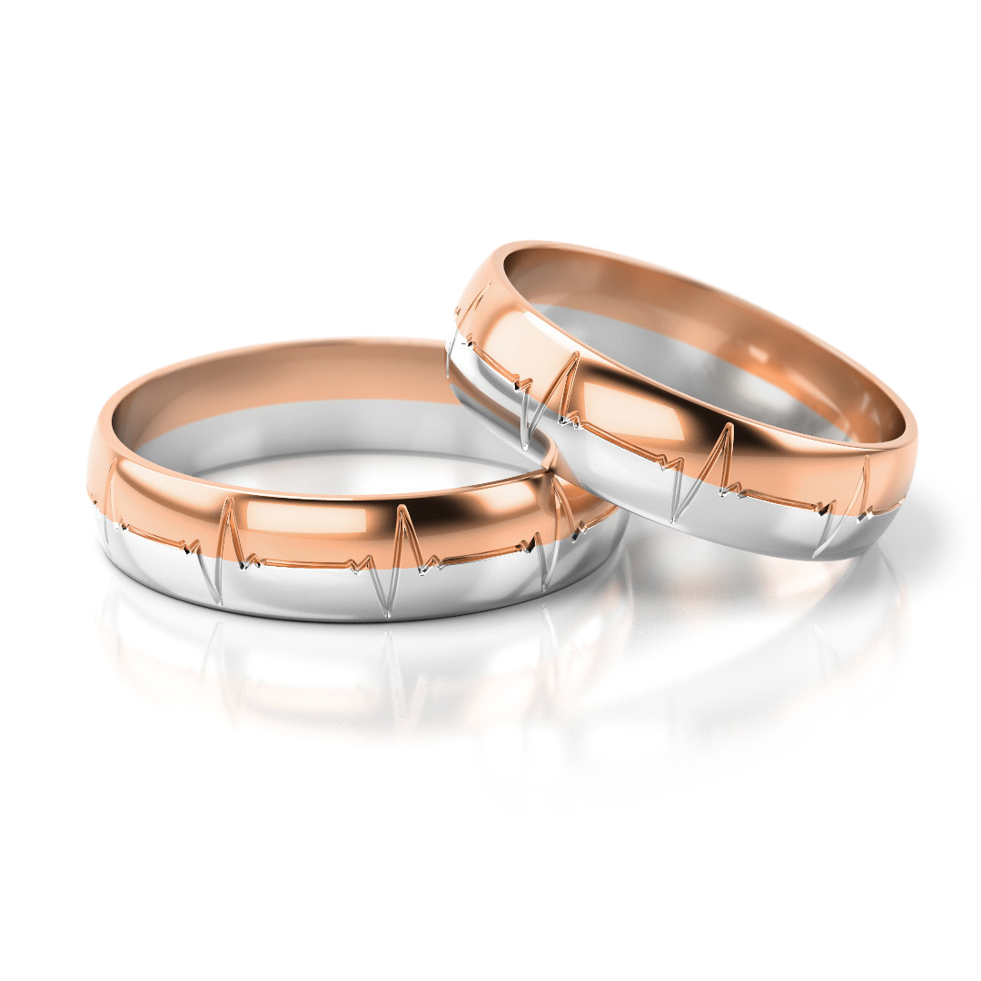 Trauringe Nr. 257 – Klassische Eheringe mit Herzschlag-MotivErhältlich in Gelbgold, Weißgold, Roségold sowie in drei edlen Bicolor-Varianten. Breite: 4,5 mm, Höhe: 1,3 mm