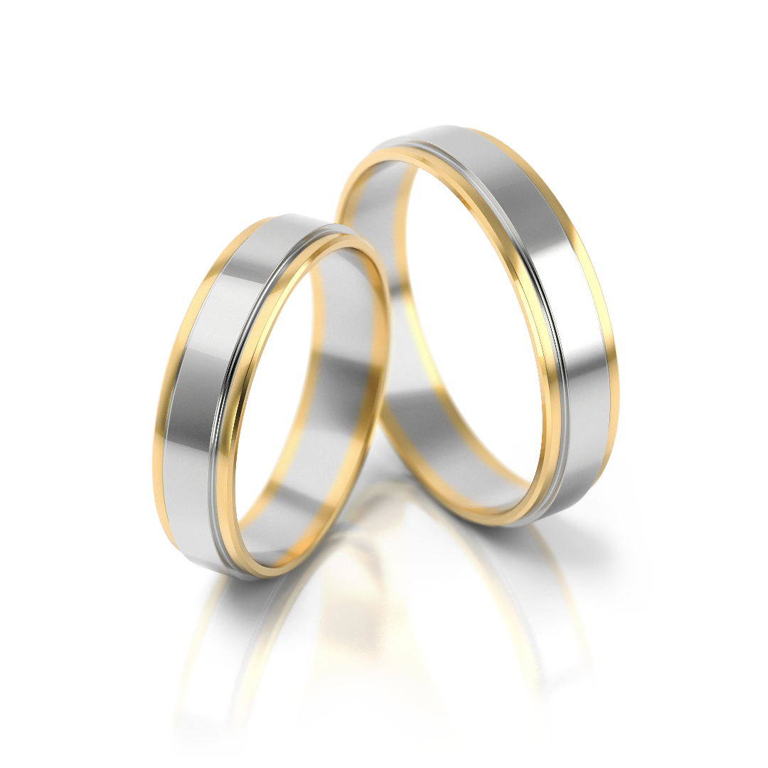 Die Eheringe Modell 47 aus der Linie „Klassisch“ verkörpern zeitlose Eleganz in ihrer schönsten Form. Die klare Bicolor-Gestaltung aus edlem Weißgold und warmem Gelbgold wird durch eine hochglanzpolierte Mittelbahn und feine goldene Kanten stilvoll ergänzt. Dieses harmonische Zusammenspiel verleiht den Ringen eine ruhige, elegante Ausstrahlung, die nie aus der Mode kommt.
