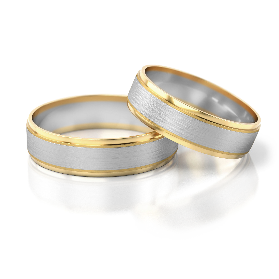 Die Eheringe Modell 89 aus der Linie „Klassisch“ stehen für zeitlose Eleganz und harmonische Bicolor-Ästhetik. Die Kombination aus warmem Gelbgold und kühlem Weißgold wird durch eine fein satinierte Mittelbahn und polierte Ränder stilvoll ergänzt. Dieses ausgewogene Design macht die Ringe zu einem eleganten Symbol für Beständigkeit und Zusammengehörigkeit.