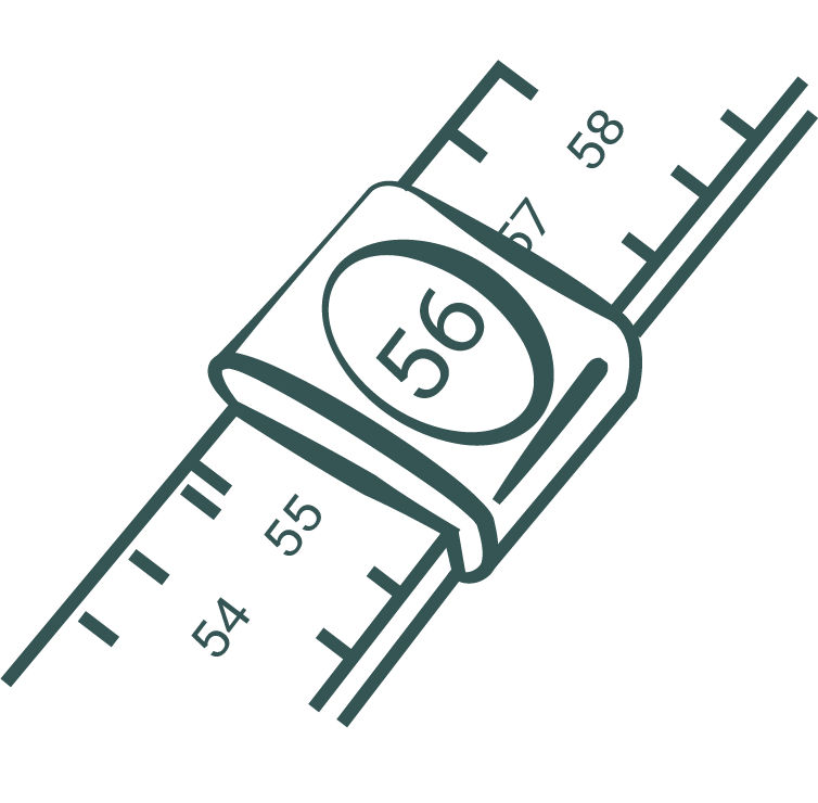 Beispiel: Ringgröße 54 bedeutet, der Ring passt auf einen Finger mit ca. 54 mm Umfang.