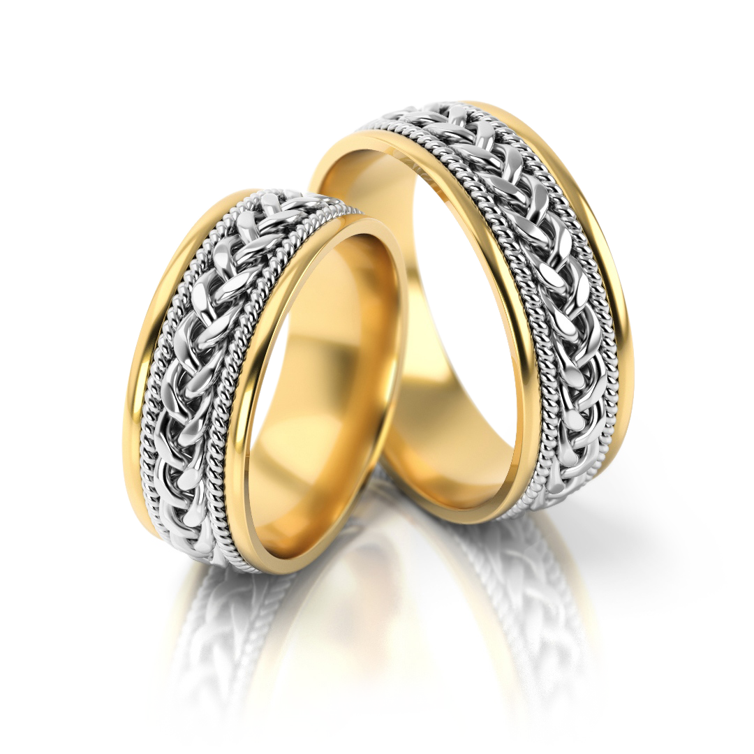 Das Zusammenspiel von Gelbgold und Weißgold unterstreicht den Vintage-Charakter und verleiht dem Flechtmuster Tiefe und Ausdruckskraft. Ein Ringpaar, das für Harmonie, Liebe und handwerkliche Qualität steht – zeitlos und einzigartig.
