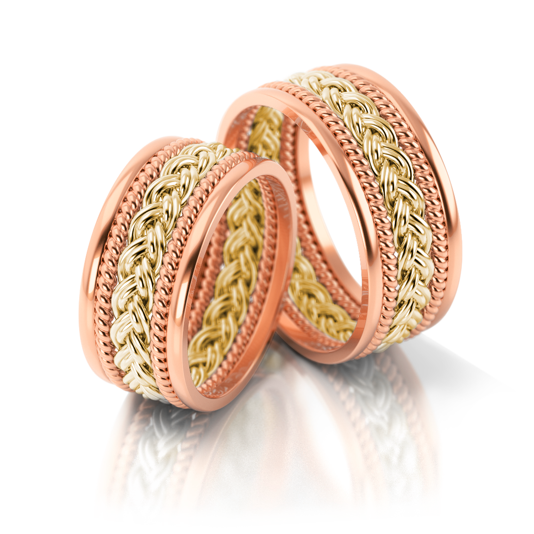 Jedes Ringpaar wird in traditioneller Goldschmiedearbeit gefertigt und individuell auf Kundenwunsch angepasst. Durch das aufwendige Flechtmuster ist jeder Ring ein Unikat – so einzigartig wie die Liebe, die er symbolisiert.