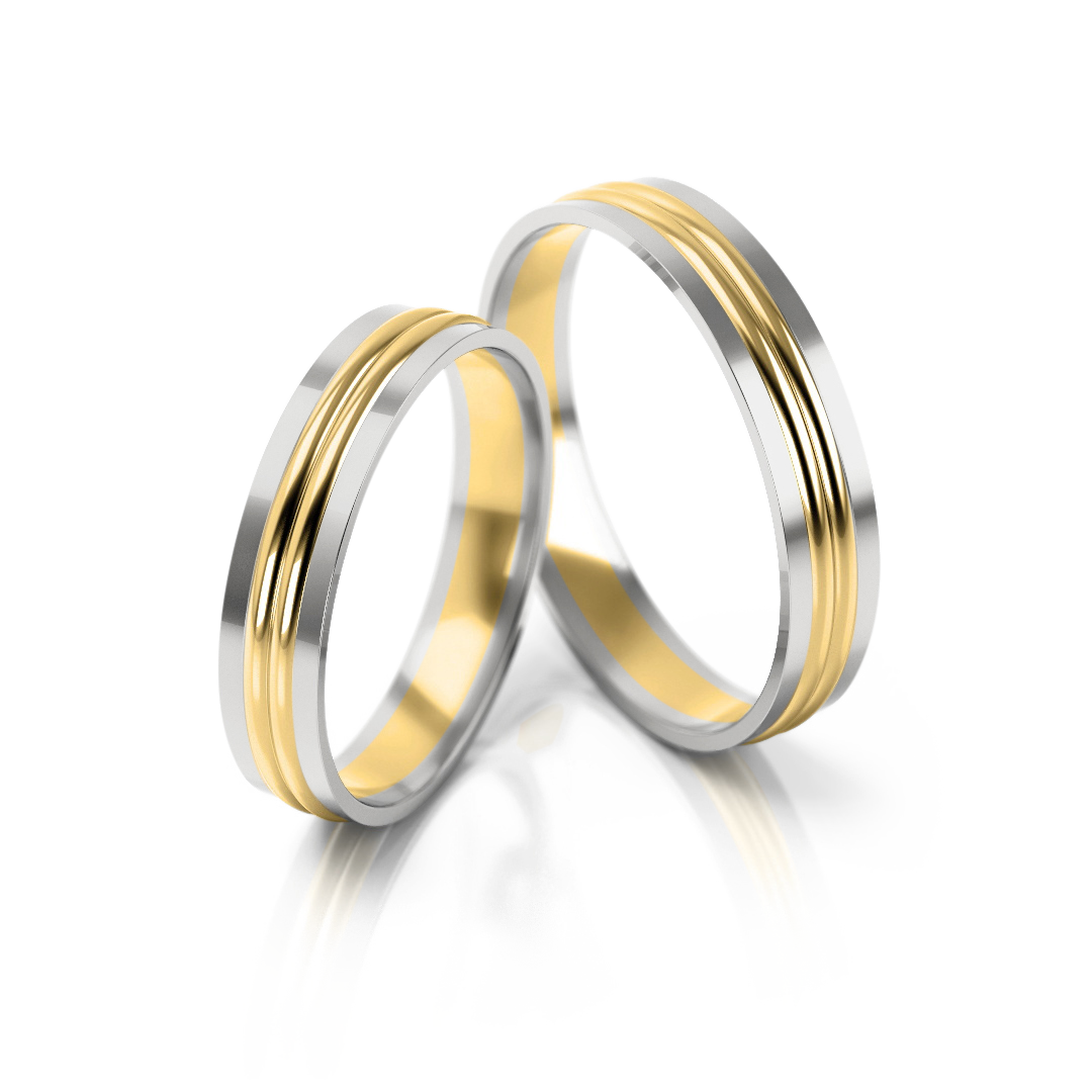 Dieses Modell ist in zwei Bicolor-Varianten erhältlich, bei denen Gelb- und Weißgold unterschiedlich angeordnet sind – so kann jedes Paar den Stil wählen, der am besten zu ihm passt. Die schlichte, polierte Oberfläche sorgt für ein elegantes Erscheinungsbild und angenehmen Tragekomfort im Alltat.