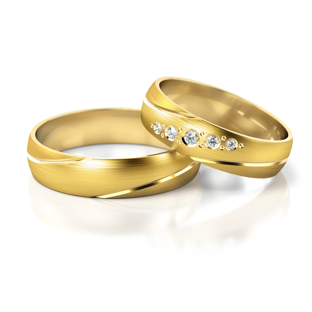 Die Trauringe Nr. 302 interpretieren das V-Motiv auf eine moderne und zugleich harmonische Weise. Die sanft verlaufenden Schrägen (Skosy) erzeugen eine dynamische Linienführung, die Bewegung, Richtung und Verbundenheit symbolisiert. Das V steht dabei für Vereinigung, Vertrauen und das bewusste Aufeinanderzugehen zweier Menschen.