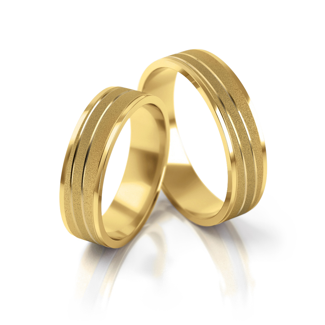 Die Trauringe aus echtem Gold (333, 375, 585 oder 750) vereinen zurückhaltendes Design mit moderner Ästhetik. Die mattierte Oberfläche wird durch polierte Linien dezent betont und schafft so eine elegante, zeitgemäße Optik. Diese Trauringe aus Gelbgold vereinen schlichte Raffinesse mit urbaner Inspiration und stehen für Wärme, Beständigkeit und ewige Liebe.