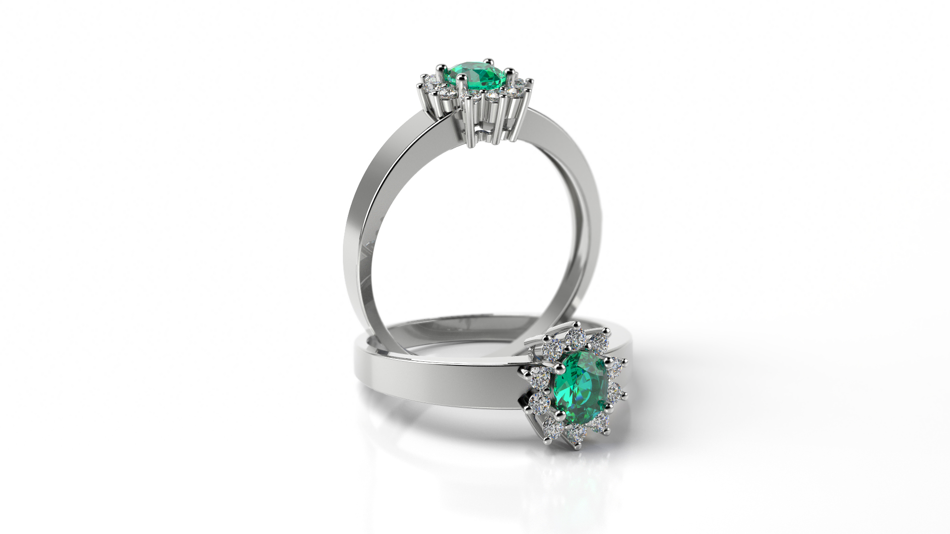 Der Verlobungsring ST06 aus Weißgold verbindet zeitlose Eleganz mit einer außergewöhnlichen Farbwirkung. Im Mittelpunkt steht ein ovaler Smaragd in der Größe 5×4 mm, dessen intensives Grün dem Ring eine besondere Tiefe und Ausdruckskraft verleiht. Der Smaragd wird von funkelnden, echten Diamanten umrahmt, die seine Farbe stilvoll hervorheben und für ein harmonisches Gesamtbild sorgen.