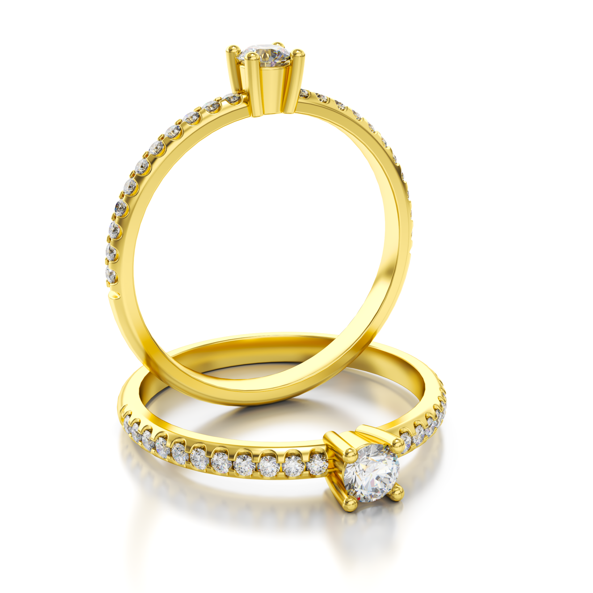 Der Verlobungsring ST09 aus Gelbgold besticht durch seine besonders feine und elegante Gestaltung. Die warme Farbe des Gelbgoldes verleiht dem Ring eine klassische, edle Ausstrahlung und bildet einen harmonischen Kontrast zu den funkelnden Diamanten. Ein zentraler Diamant steht im Mittelpunkt des Designs und wird von weiteren Diamanten begleitet, die dem Ring ein gleichmäßiges, dezentes Funkeln verleihen.