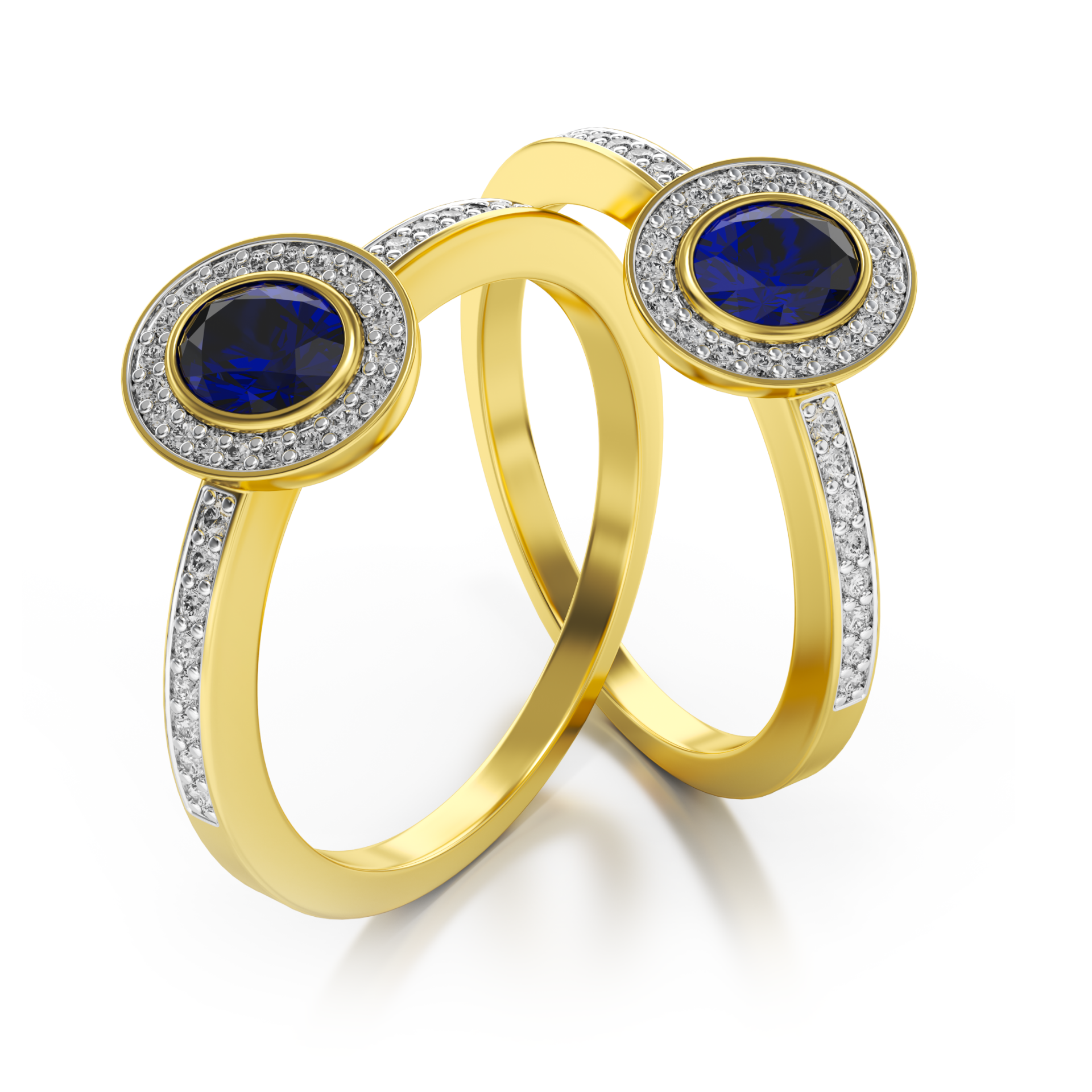 Der Verlobungsring ST12 aus Gelbgold besticht durch seine filigrane Eleganz und eine harmonische Edelsteinkombination. Im Mittelpunkt steht ein ovaler Saphir in der Größe 4 × 3 mm, dessen zarte Farbwirkung durch den warmen Ton des Gelbgoldes besonders schön zur Geltung kommt. Fein gefasste Diamanten ergänzen den Zentralstein dezent und verleihen dem Ring ein elegantes, ausgewogenes Funkeln.